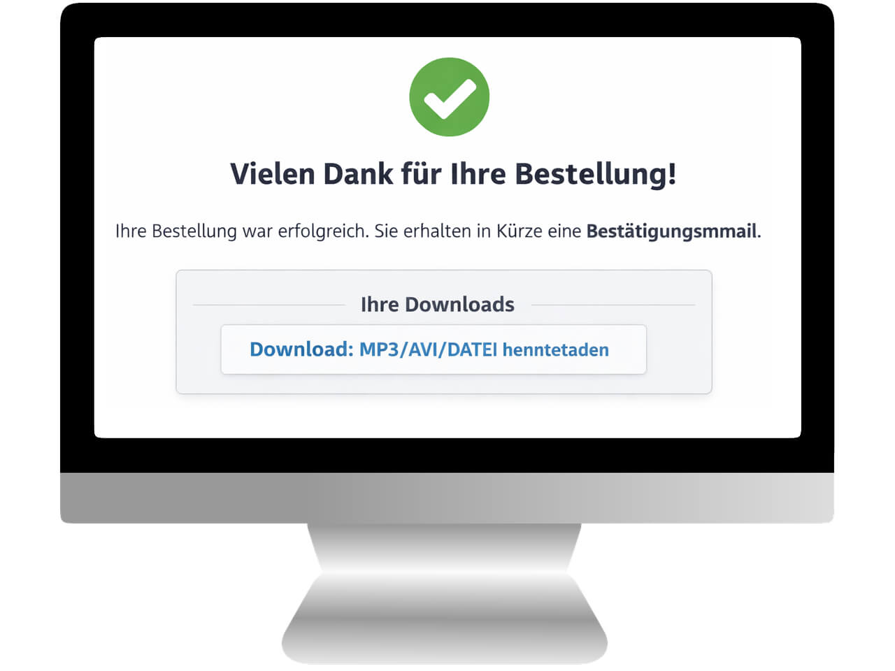 Eine klare Hervorhebung wie „Download: MP3/AVI/DATEI herunterladen!“ macht den Zweck des Links auf den ersten Blick verständlich. Der Kunde muss nicht suchen, sondern wird direkt zur gewünschten Aktion geführt. Das verbessert die Usability Ihrer Bestellabschlussseite und sorgt für ein angenehmeres Einkaufserlebnis.